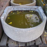 Die Ansicht/Vorderseite ist bei den halbrunden Trögen mal mehr, mal weniger stark gewölbt. Verglichen mit rechteckigen Trögen sind sie relativ selten. Gerade bei den größeren haben wir meist nur eine Handvoll auf dem Gelände.